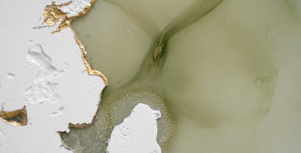 The resulting technique—a new material process developed by the artist—mimics the luster and density of jade while integrating hand-applied 24k gold. These golden lines do not decorate, but instead bind—tracing paths of endurance, memory, and restoration.